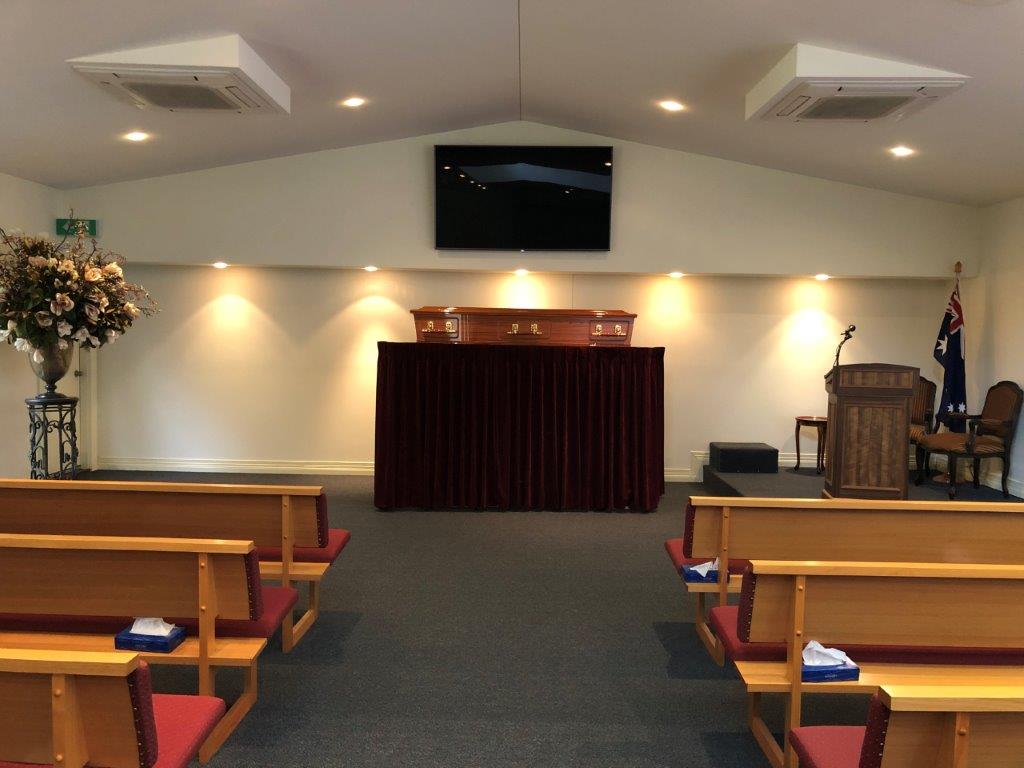 The Moe chapel is fitted with the latest audio visual technology to deliver photographic and video presentations during memorial services. A large function room is available adjacent to the chapel to provide catering and refreshment facilities that we can provide following the funeral service.